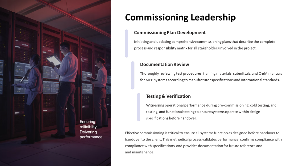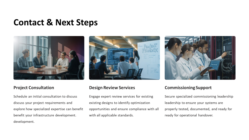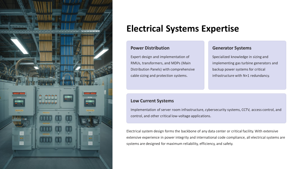 Welcome to a comprehensive overview of specialized expertise in MEP (Mechanical, Electrical, Plumbing) design, data center engineering, and project management. With over 25 years of experience and multiple advanced degrees, this presentation showcases professional capabilities in designing, constructing, and commissioning critical infrastructure according to international standards and best practices.